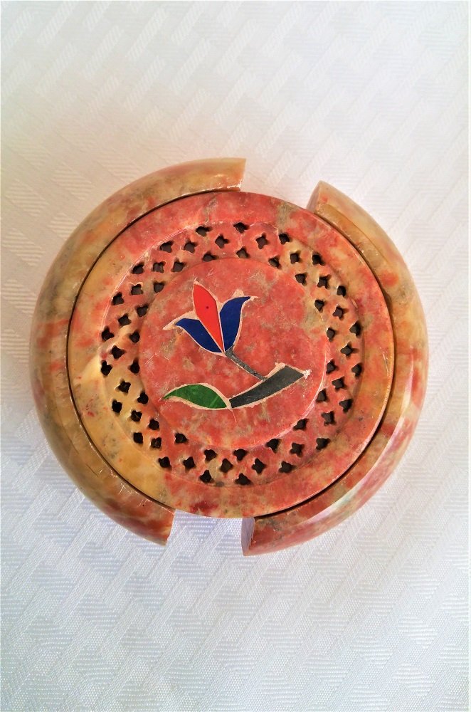 新品本物 Aホルダー、手彫りインレー花デザイン[半貴石ストーン]、Handicraftインドから in 天然大理石ソープストーンの茶コースター、セット7 B071YV31K1 -コースター - www.ibici.cl